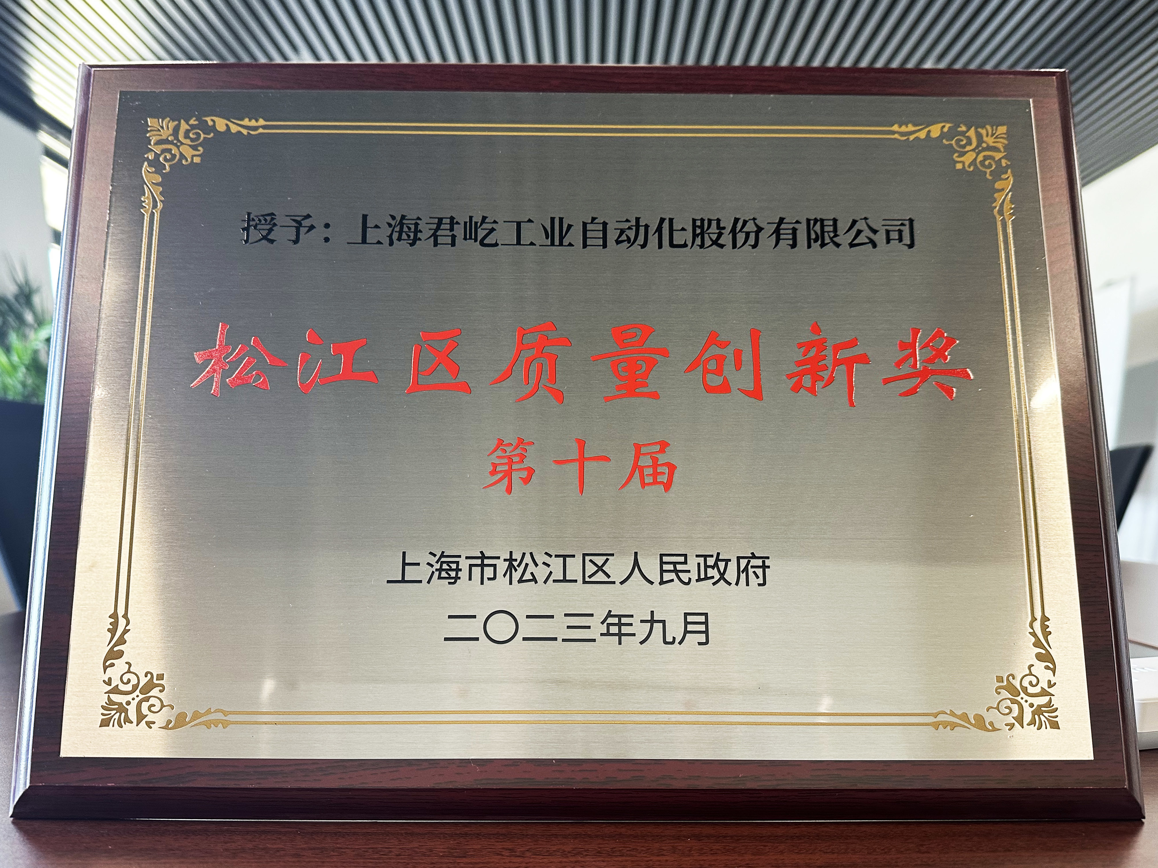 On October 17, the 2023 Songjiang District Quality Standards New High Ground Promotion Conference and the 10th Songjiang District Government Quality Award Ceremony were successfully held in the district government conference room. During the event, the list of organizations awarded the 2023 10th Government Quality Award was announced, and Shanghai Junyi Industrial Automation Co., Ltd. was honored with the "2023 Songjiang District 10th Annual Quality Innovation Award."