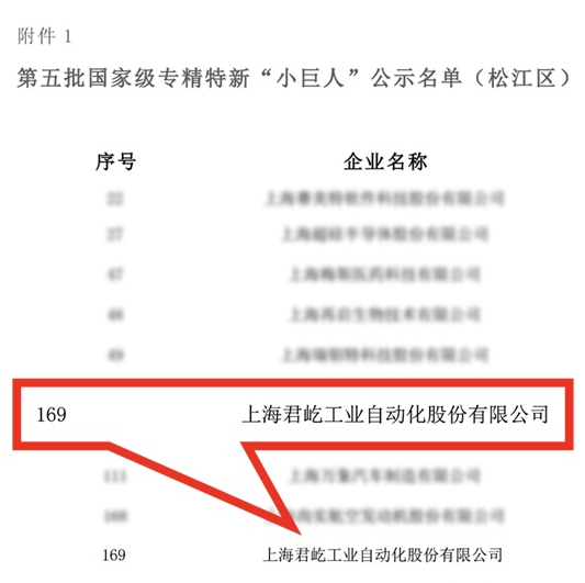 Recently, the China's Ministry of Industry and Information Technology officially announced the fifth batch of "Little Giant" enterprises recognized for their specialization, expertise, and innovation—Shanghai Junyi Industrial Automation Co., Ltd. has made the list!