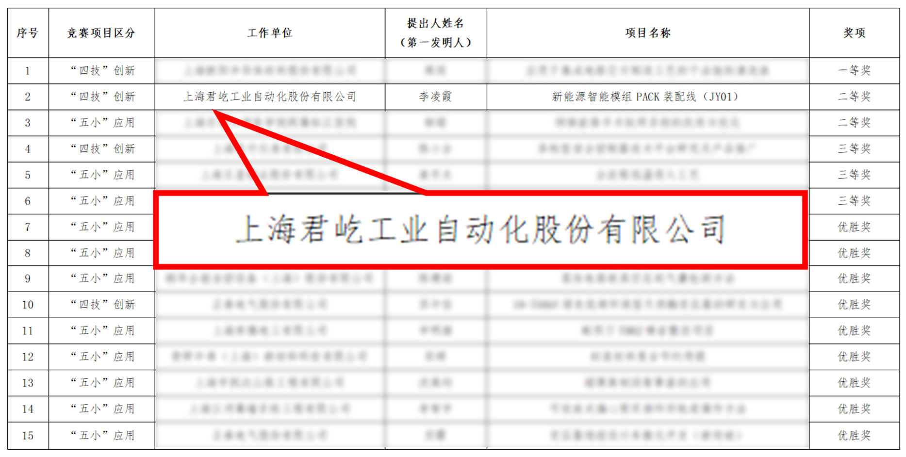 Recently, the "2025 Songjiang District Employee Post-Technical Innovation Competition," organized by the Songjiang District Federation of Trade Unions, concluded with the announcement of its winners. Among the entries, the project submitted by Shanghai Junyi Industrial Automation Co., Ltd. was awarded the Second Prize in the "Four Technologies" Innovation category.